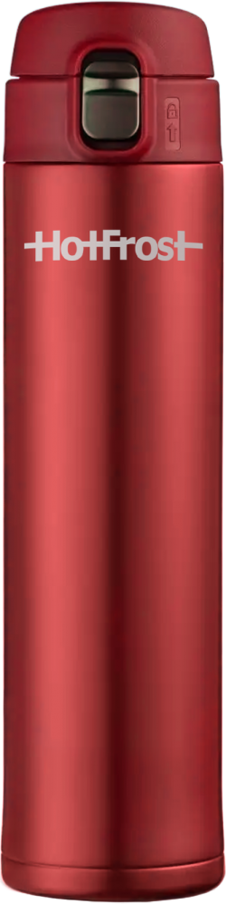 HotFrost TC-01 Red thermal mug - is a stylish and comfortable thermal mug that allows you to keep drinks hot for up to 6 hours or cold for up to 18 hours. It holds 520 ml of liquid. The thermal mug has double walls of stainless steel, vacuum insulation and a lock on the lid. It opens easily and conveniently with one finger. The body of the mug does not fog up and is covered with a durable paint of red color, resistant to wear.