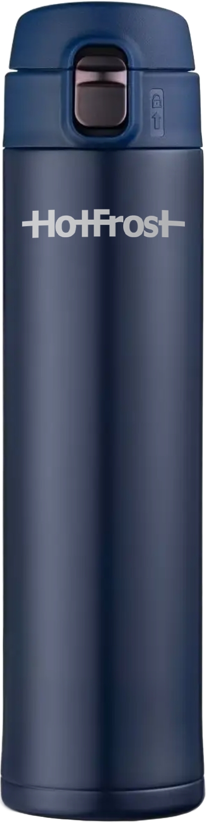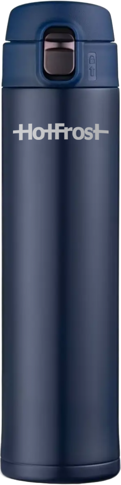 HotFrost TC-02 Blue thermal mug - is a stylish and comfortable thermal mug that allows you to keep drinks hot for up to 6 hours or cold for up to 18 hours. It holds 520 ml of liquid. The thermal mug has double walls of stainless steel, vacuum insulation and a lock on the lid. It opens easily and conveniently with one finger. The body of the mug does not fog up and is covered with a durable paint of blue color, resistant to wear.